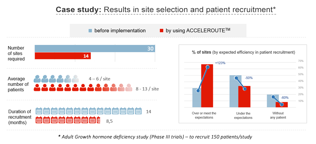 Acceleroute™ is our site pre-classification and motivation program, developed for boosting the number of well-performing study sites, minimizing risk in site selection and significantly shortening the duration of patient recruitment. A new, accelerated way in study site selection.